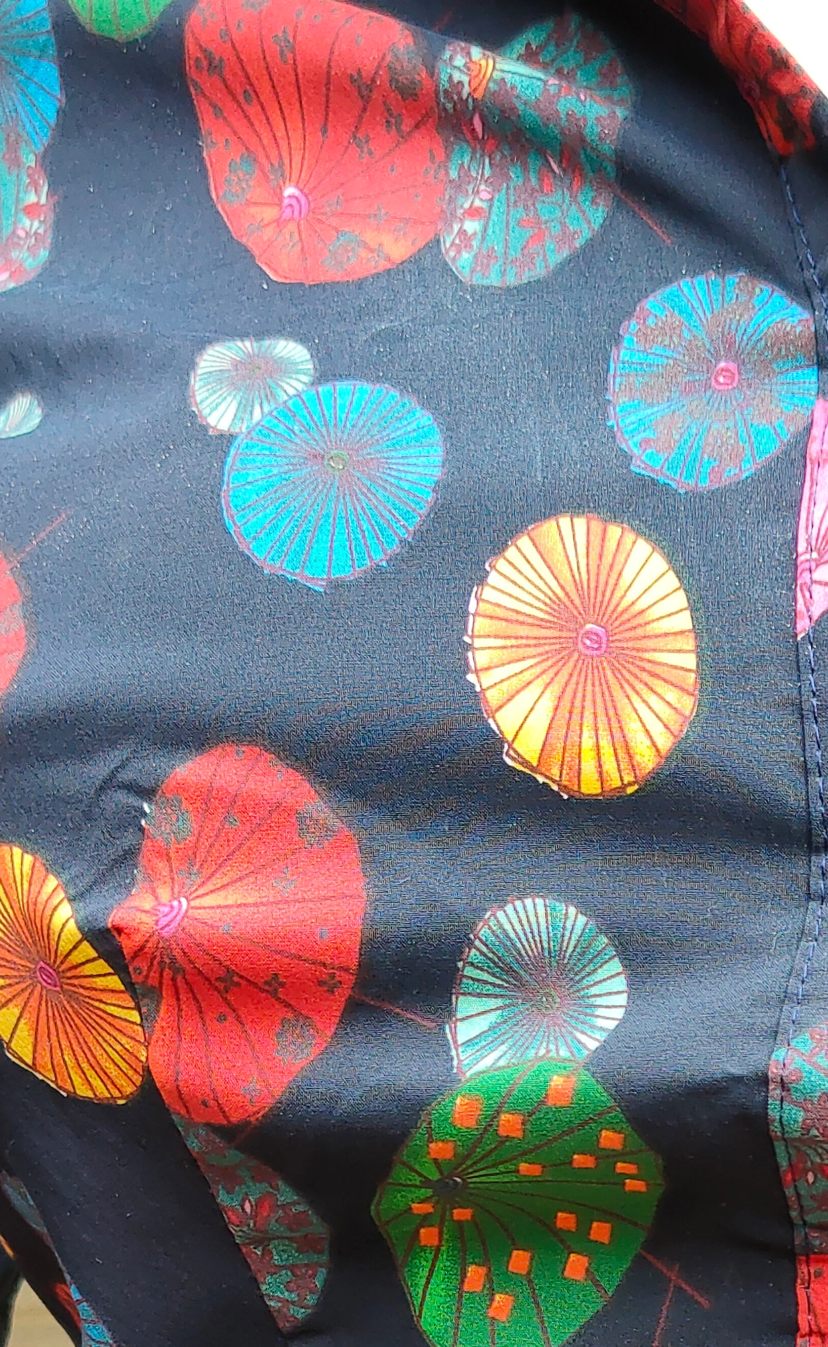 Kolor: Granatowy (Navy) z kolorowym wzorem w parasolki