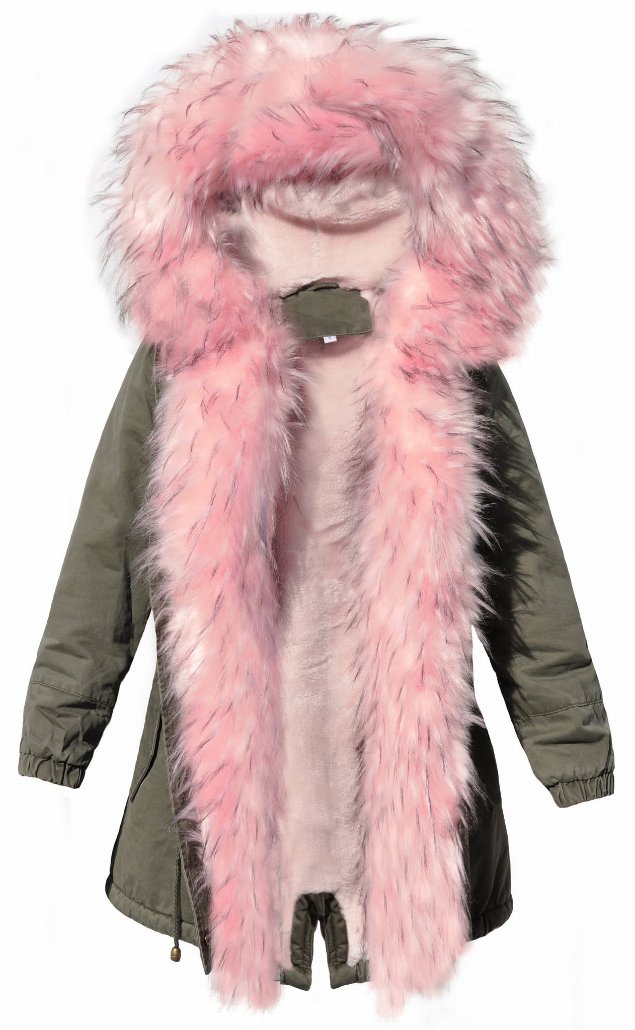 Kurtka Parka Zimowa Futerko Różowe #D216