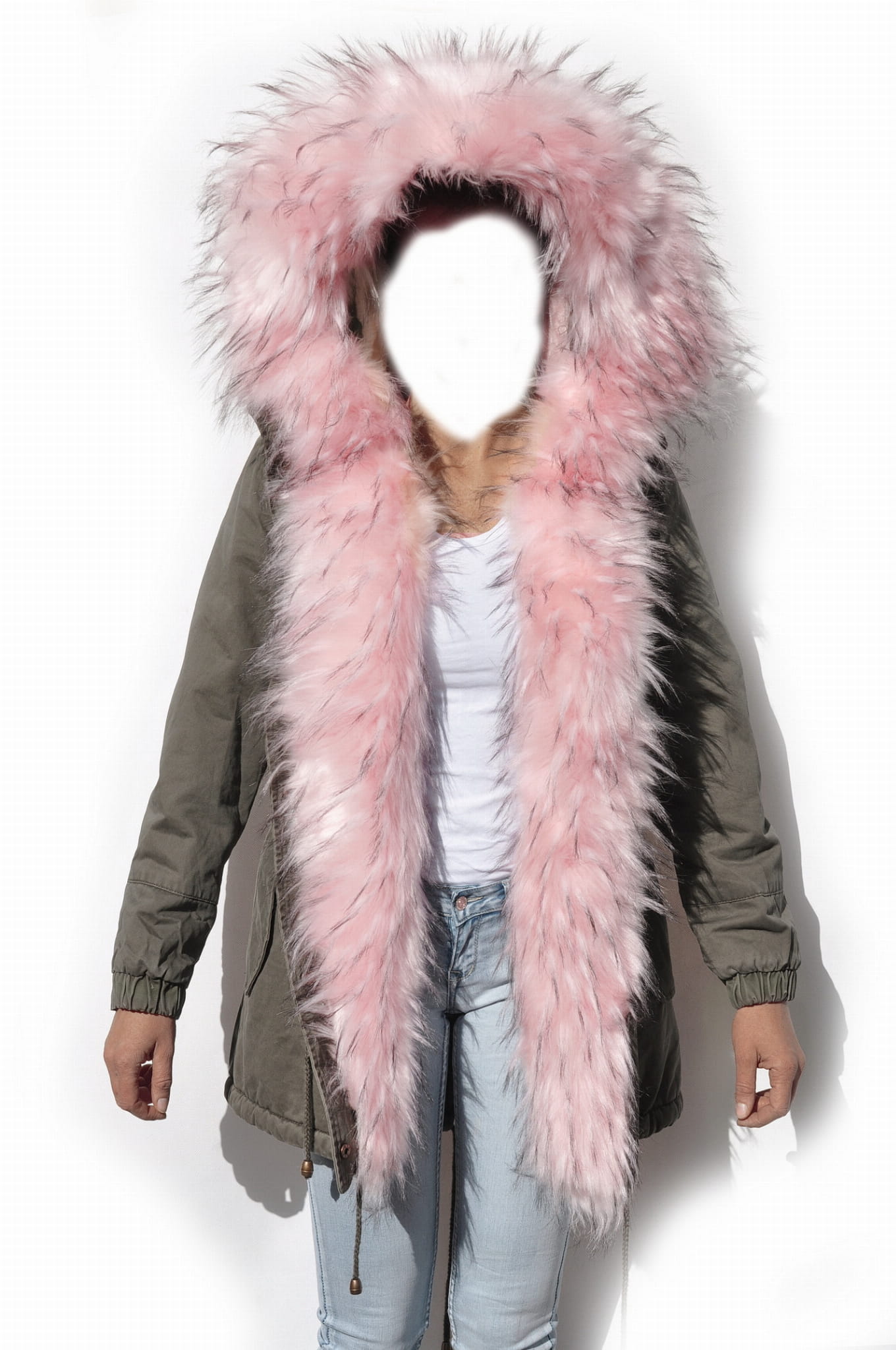 KURTKA PARKA DAMSKA ZIMOWA KHAKI MILITARNA KAPTUR FUTERKO model #D216 FASHIONAVENUE.PL