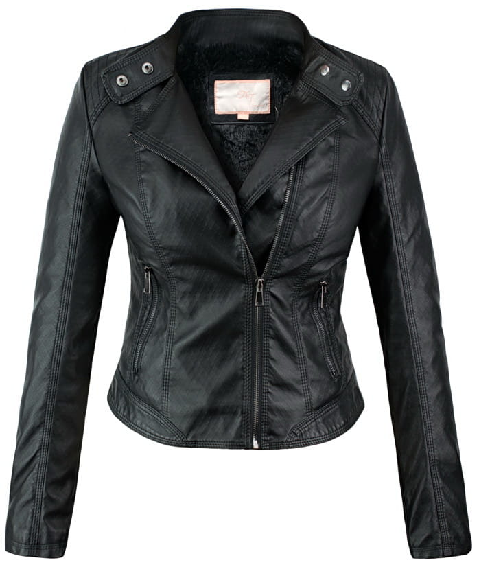 KURTKA DAMSKA RAMONESKA SKÓRA WYTŁACZANA Z CIEPŁYM MISIEM STÓJKA model #90 w sklepie FASHIONAVENUE.PL