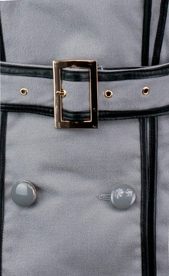 Zapinany na guziki i ściągany w talii paskiem