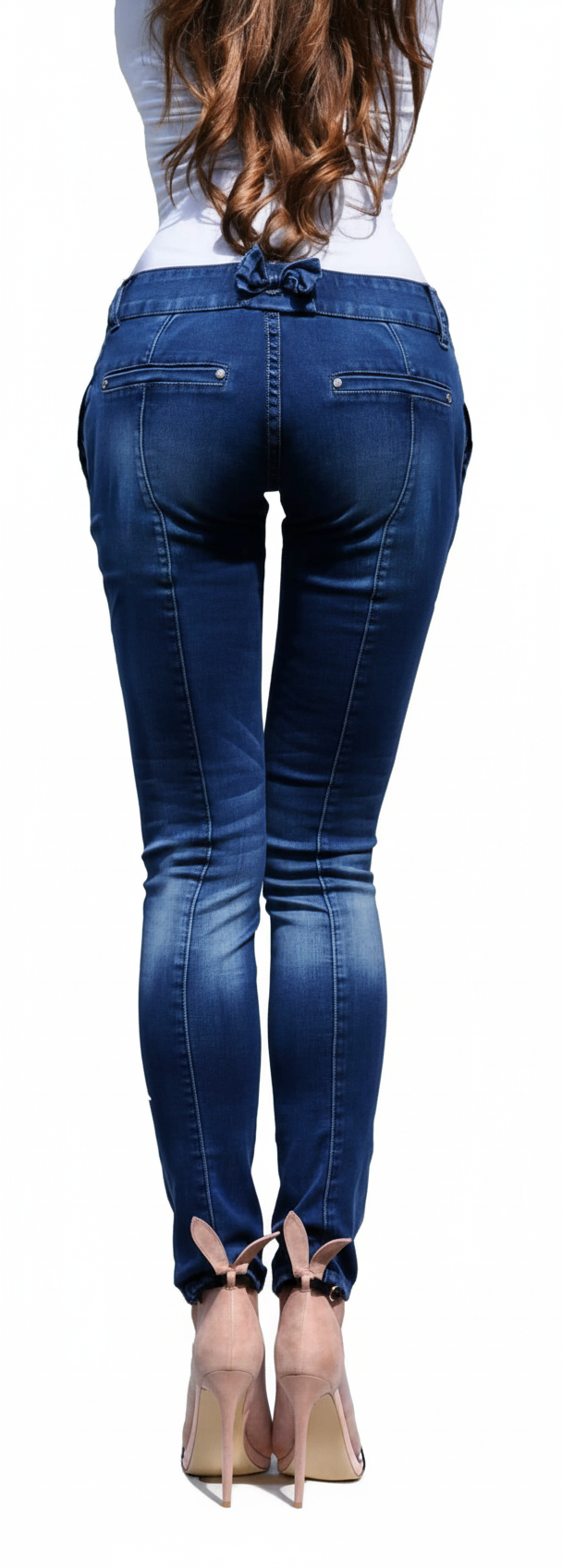 Tył spodni z ozdobną kokardą
