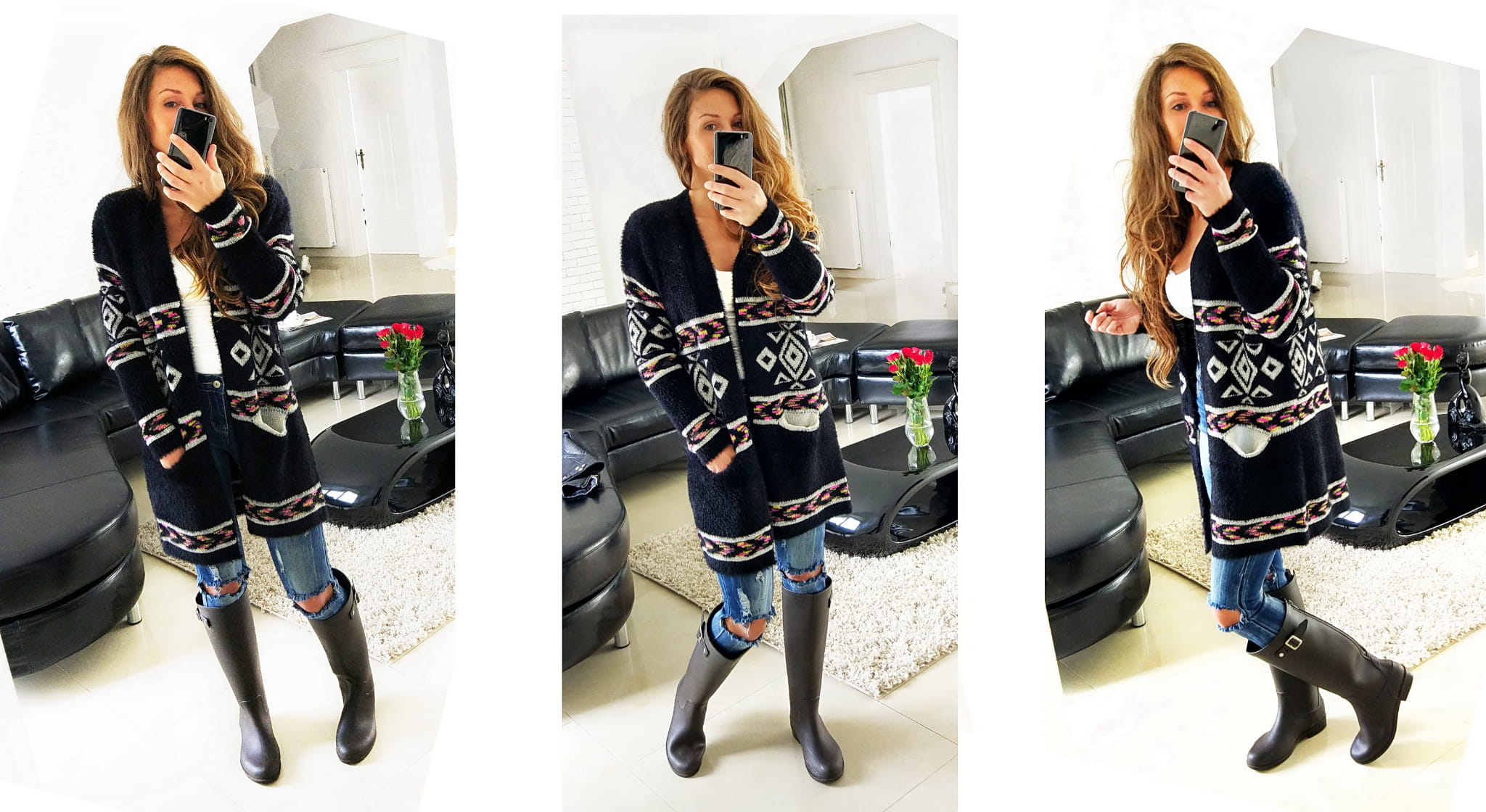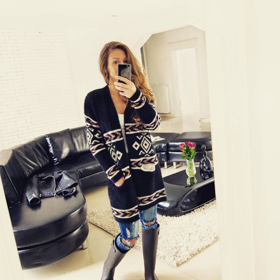 CIEPŁY DŁUGI SWETER KARDIGAN BOHO ETNO WE WZORY SKANDYNAWSKIE na JESIEŃ WIOSNĘ model #SW001 FASHIONAVENUE.PL