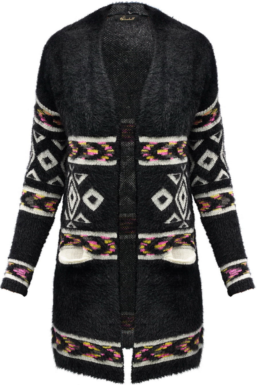 Ciepły długi kardigan Boho Etno - narzutka z otwartym przodem