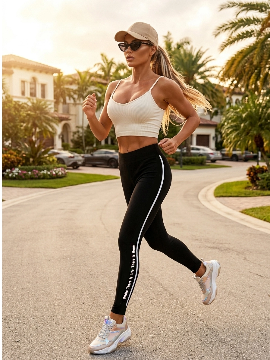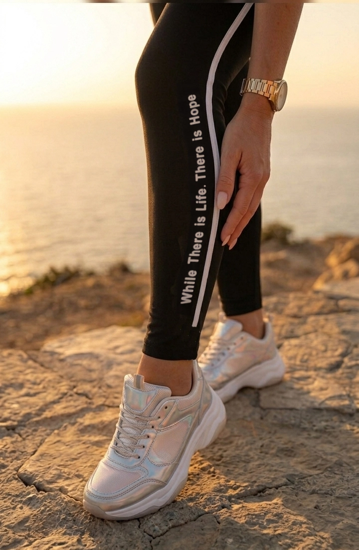Postaw na modę, która inspiruje! Nasze klasyczne czarne legginsy to idealne połączenie sportowej wygody i miejskiego szyku. Wyróżniają się białym, kontrastowym lampasem, na którym widnieje napis SPORT LOVE oraz motywacyjne hasło: "While There is Life, There is Hope", co oznacza: „Dopóki jest życie, jest nadzieja”.